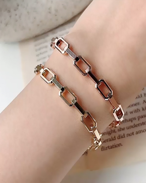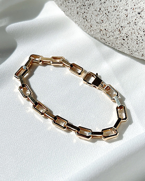 - 14K 18K 볼드 사각 체인 레이어드 팔찌