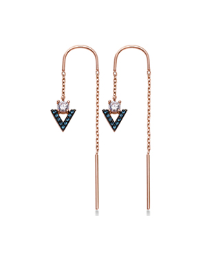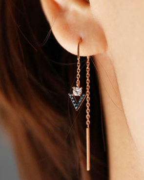 - 14K 18K 세모 큐빅 체인 드롭 귀걸이