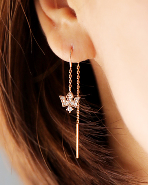- 14K 18K 로즈 드롭 체인 귀걸이
