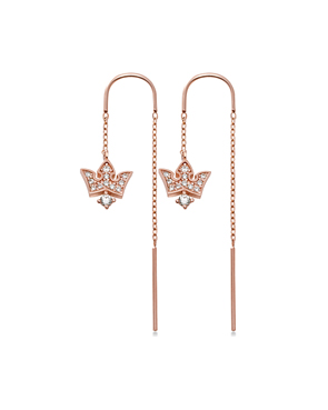 - 14K 18K 크라운 큐빅 체인 드롭 귀걸이
