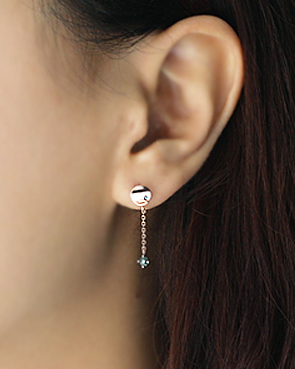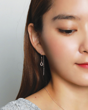 - 14K 18K 써클 큐빅 체인 드롭 귀걸이