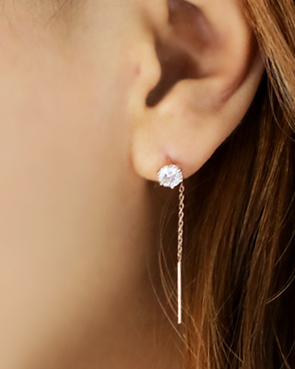 - 14K 18K 데일리 심플 큐빅 체인 롱 귀걸이