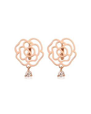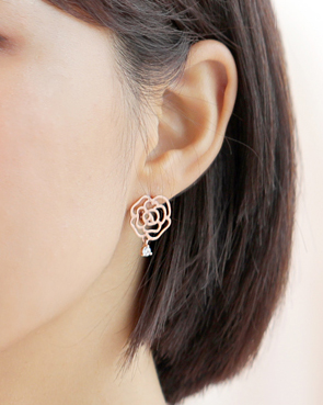- 14K 18K 큐빅 써클 장미 귀걸이