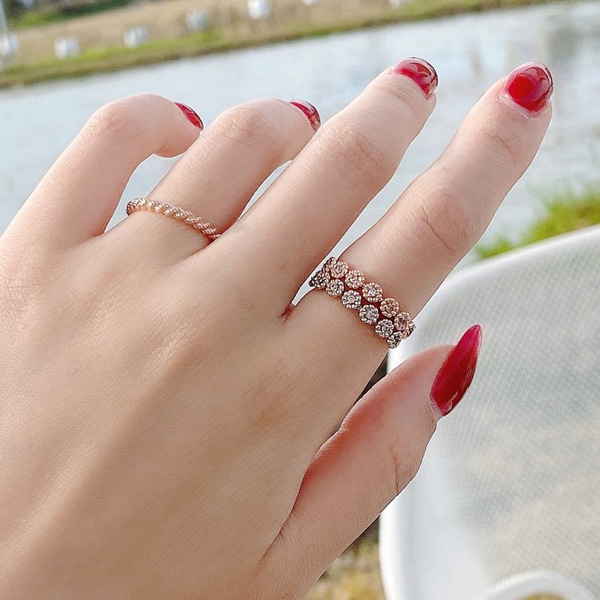 14K 18K 꼬냑 큐빅 플라워 라인 데일리 반지